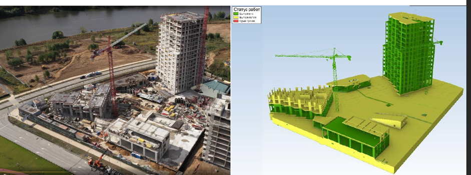 Еженедельно выполняется актуализация графика: генподрядчик вносит фактическое выполнение по объемам и срокам, рассчитывает прогнозные сроки завершения работ, строительный контроль отмечает принятые объемы работ. На основе этих данных формируются сравнительные кривые по освоению и закрытию подтвержденных объемов работ, а также визуальный отчет с завершенными и выполняющимися работами с указанием просроченных и выполненных в срок работ. Эти статусы отображаются в графике и на 3D-модели для еженедельного представления прогресса работ на планерках, что дает актуальную информацию по проекту и помогает оперативно принимать управленческие решения для запуска компенсирующих мероприятий по соблюдению сроков и бюджетов.