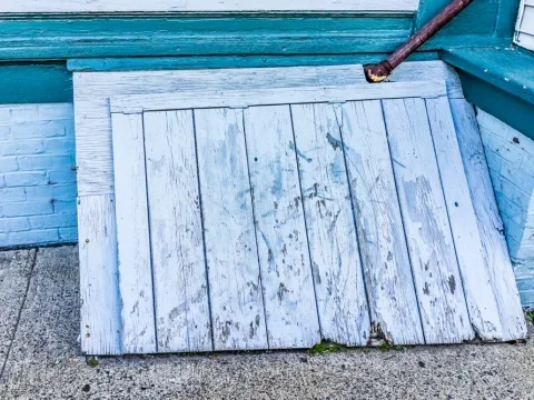Если здание выполнено из дерева, ставить двери и окна нет необходимости — достаточно закрыть проемы с помощью фанеры или досок. В этом случае обеспечивается нормальная циркуляция воздушных масс. Как результат, бревно или брус зимует без проблем.